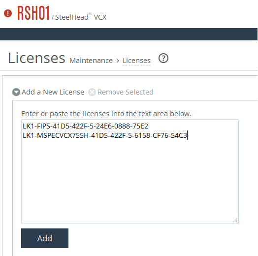 15. Masukkan license di point no 4 gambar di atas ke Steelhead. Caranya masih di menu Licenses,  Add New License lalu masukkan license ke text box dibawahnya. Bisa lebih dari 1 baris. Jika sudah klik Add